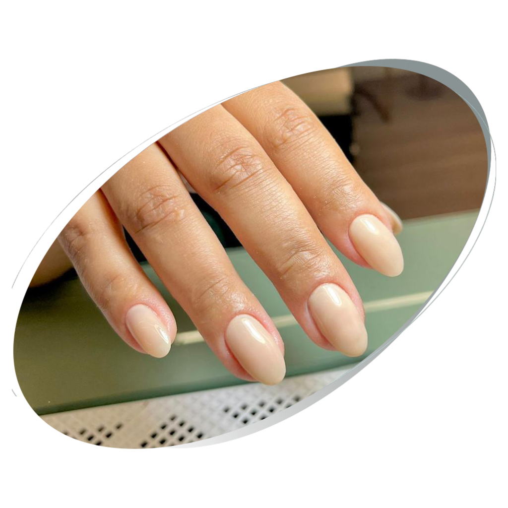 Cuticulagem, blindagem em gel com nivelamento nas unhas naturais no formato de sua preferência, esmaltação em gel, finalização com Top Coat e hidratação das cutículas.